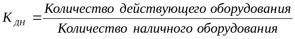 Коэффициент использования наличного оборудования (по действующему) (Кдн) рассчитывается по формуле: