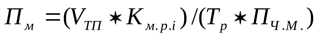 Пчм - часовая производительность машины, используемой для выпуска i-го вида продукции в натуральных единицах измерения.