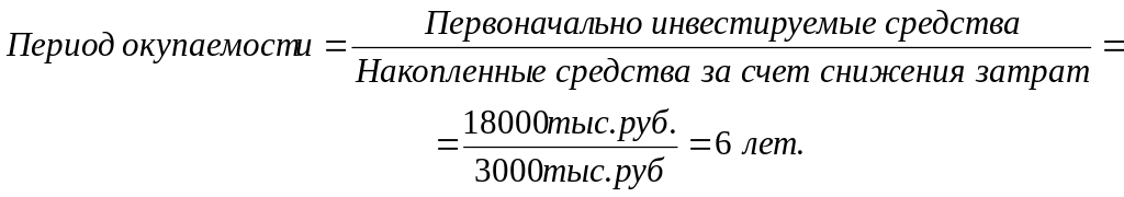 Период окупаемости представляет собой отрезок времени, необходимый для возмещения первоначального объема инвестиций. Он определяется путем деления величины первоначальных капитальных затрат на приток денежных средств в результате прироста доходов или снижения затрат.