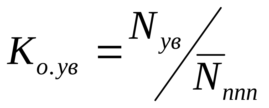2. Коэффициент оборота по выбытию (увольнению) (Ко.ув) – отношение числа выбывших за период (Nув.) к среднему списочному числу работающих за тот же период: