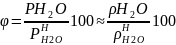 Масса водяного пара, содержащегося в 1 м3 газов (воздуха) Pн2о, и его парциальное давление ρн2о при определенных температурах и давлениях достигают максимально возможных значений - соответственно р 0 и р 0 , характеризующих насыщенное состояние сушильного агента. Исходя из этого, влагосодержание газов (воздуха) φ, %, может быть представлено относительными значениями: