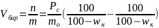 Сушильный агент (смесь топочных газов с воздухом) при непосредственном соприкосновении с сушимым материалом насыщается испаряемой влагой. Влагосодержание сушильных газов (воздуха), г на 1 кг сухих газов, определяют из соотношения