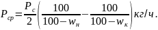масса внешней влаги, удаляемой при сушке в первой стадии процесса, кг: