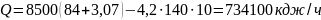 Q= 10000(104 — 40)— 4,2·140·10 = 634 120 кдж/ч.