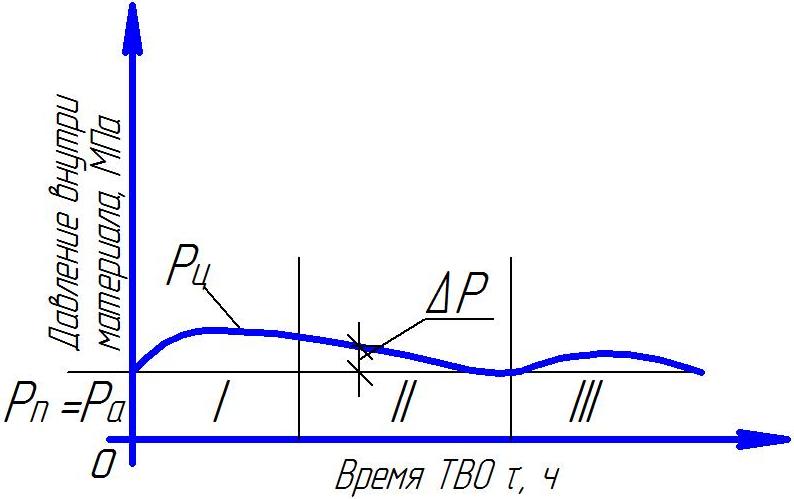 Изотермическая выдержка. В период изотермической выдержки поля температур и влагосодержаний сначала постепенно выравниваются, а далее перепады температур и влагосодержаний меняют свой знак по отношению к перепадам температур и влагосодержаний во время подогрева. Однако эти перепады незначительны, поэтому изотермическую выдержку практически можно считать периодом постепенно снятия напряженного состояния.