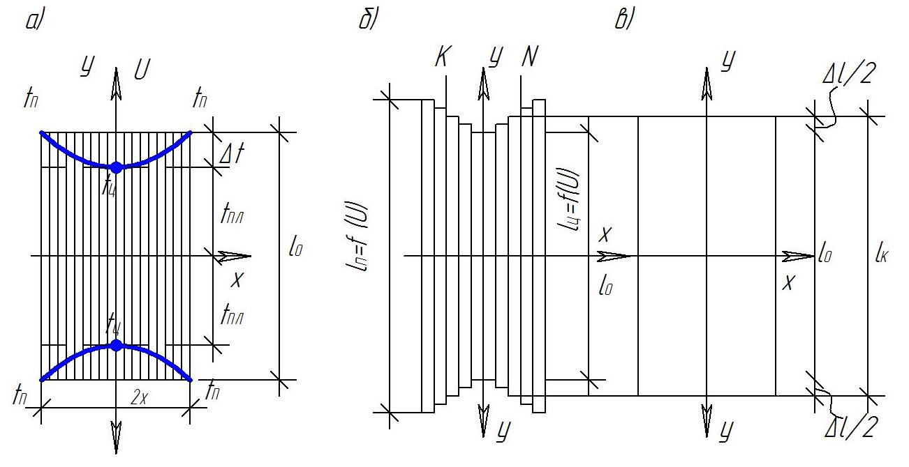 За счет уменьшения влагосодержания U и температуры Т при испарении влаги и охлаждении пластина уменьшается до каких-то действительных размеров с уменьшением влагосодержания до luд и за счет снижения температуры до ltд.