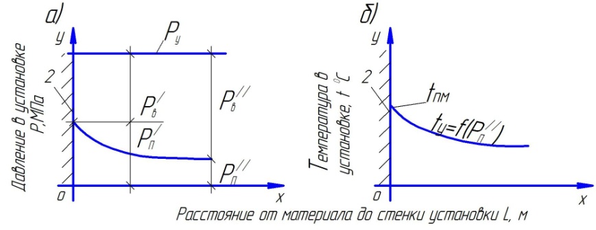 Внешний тепло- и массообмен при нагреве материала. Отложим на оси X (рис.4.28, а) расстояние от материала до стенки установки, а на оси Y, по поверхности материала,— давление в установке Р. До поступления пара в установке находился воздух, поэтому давление в ней, если она не полностью герметична, будет равно атмосферному Ру.
