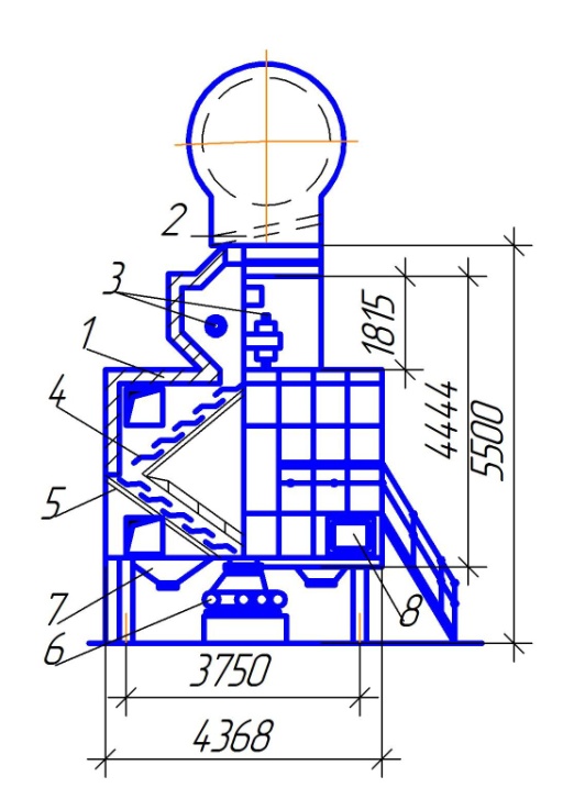 Рис. 4.54. Шахтная печь Теплопроекта для вспучивания перлита
