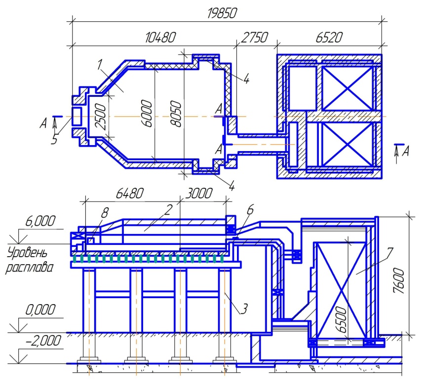 где Fб - площадь зеркала бассейна, м2; Пч - заданная часовая производительность печи; RF — съем расплава, кг/(м2·ч).