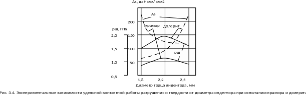 Влияние диаметра индентора на твердость рш и удельную контактную работу разрушения Аs исследовалось по стандартной методике на образцах мрамора и долерита.