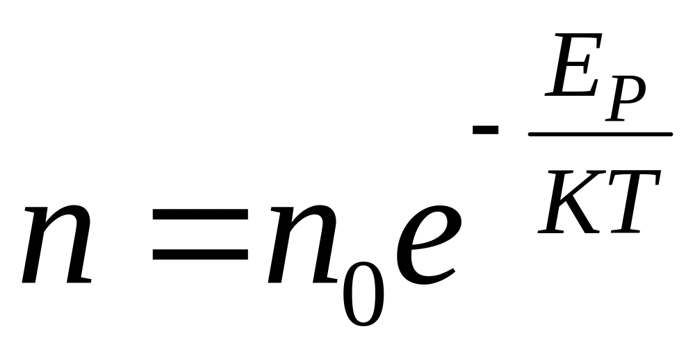 Формула (*) определяет распределение молекул по высоте и выражает также распределение их по значениям потенц. энергии справедливо не только для поля силы тяжести, но и для любого поля потенц. сил.