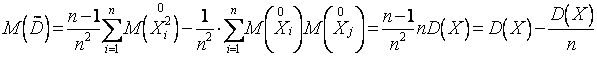 Оказывается, что предложенная оценка дисперсии (1.4) состоятельна (легко доказать) и (1.5) не является несмещенной. Чтобы в этом убедиться, возведём в квадрат последнее слагаемое в (1.4)