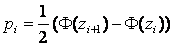 4. Вычисляют теоретические вероятности pi попадания случайной величины в интервалы ( по формуле