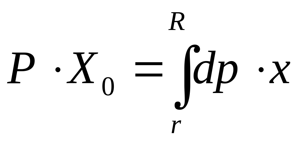 Для лопаті лопатевої мішалки, точка, де прикладена сила P знаходиться на середній лінії лопаті на відстані Х0 від осі обертання. Значення Х0 знаходиться з умови рівноваги, а саме – момент рівнодіючої сили Р відносно осі обертання М=Р Х0 дорівнює сумі моментів елементарної сили dрх, де dр, - сила, а x – плече сили (відстань від осі до виділеного елемента). З умови рівноваги
