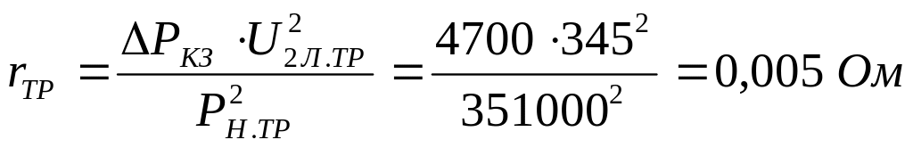 Определим активное и индуктивное сопротивление СТ на основании его каталожных данных: