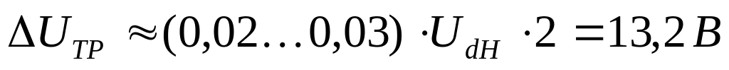 Коммутационное падение напряжения на тиристоре при номинальной нагрузке принимаем: