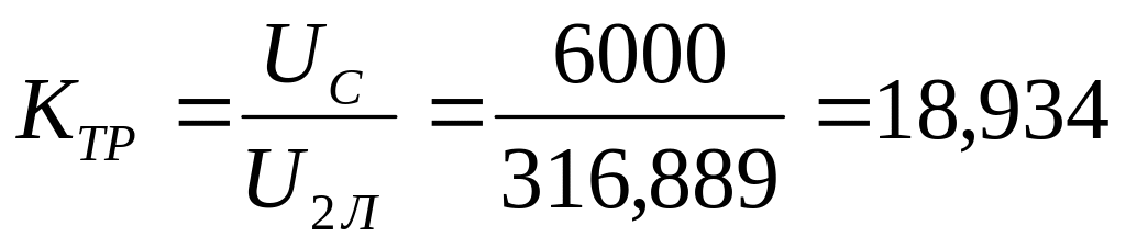 Принимаем напряжение питающей сети UС = 6000 В, тогда коэффициент трансформации: