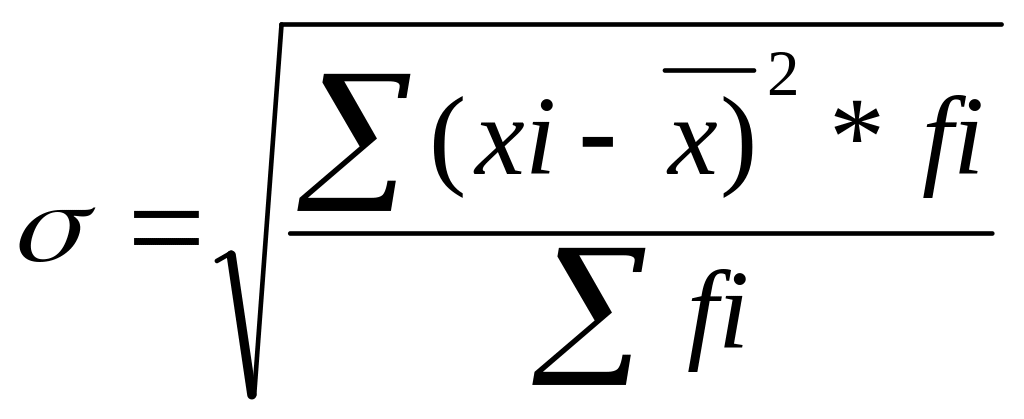Размерность дисперсии соответствует квадрату размерности исследуемого признака, поэтому для сохранения экономического смысла будет рассчитываться показатель, который называется средним квадратическим отклонением.
