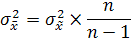 Поскольку величина n/(n-1) при достаточно больших n близка к единице, то можно приближенно считать, что выборочная и генеральная дисперсия равны.