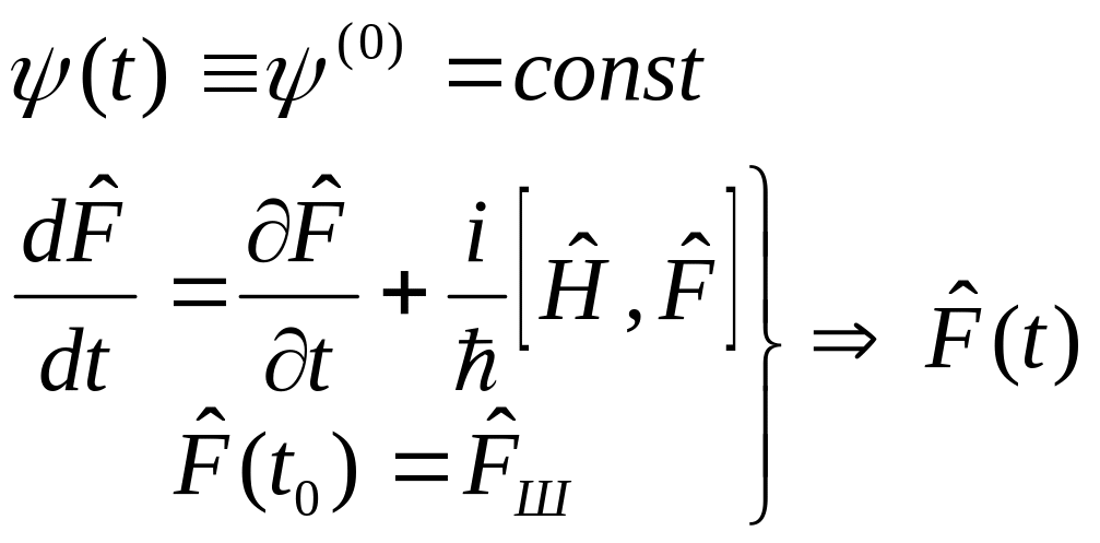 Во второй эволюция учитывается путем переопределения в каждый момент времени операторов наблюдаемых при неизменных векторах состояния: