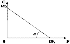 Графически бюджетное ограничение выражается в виде бюджетной линии – отрезка прямой, все точки на которой показывают комбинации благ, которые потребитель в состоянии приобрести при данных ценах при полном расходовании его дохода. Угол наклона бюджетной линии (tg) определяется обратным отношением цен товаров (PF/PC).