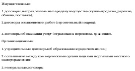- •35) По содержанию гражданско-правовые договоры делятся на: