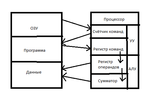 5) УУ расшифровывает код операции и выдает сигналы АЛУ выполнить соответствующую операцию над данными;