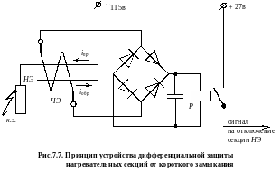 При питании нагревательных элементов переменным током может применяться схема дифференциальной защиты (рисунок 7.7), принцип работы которой состоит в следующем.