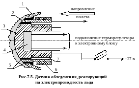 Датчик обледенения, реагирующий на электропроводность льда. Этот датчик в свою очередь состоит из датчика температуры набегающего потока воздуха и датчика электрической проводимости (рисунок 1.5).