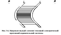 Нагревательный элемент представляет собой две токопроводящие шины, соединяемые между собой отрезками тонкой проволоки (рисунок 7.6.). Густота расположения проволок по длине нагревательного элемента переменная с тем, чтобы при неравномерной теплоотдаче участка защищаемой поверхности обеспечить его равномерный нагрев.