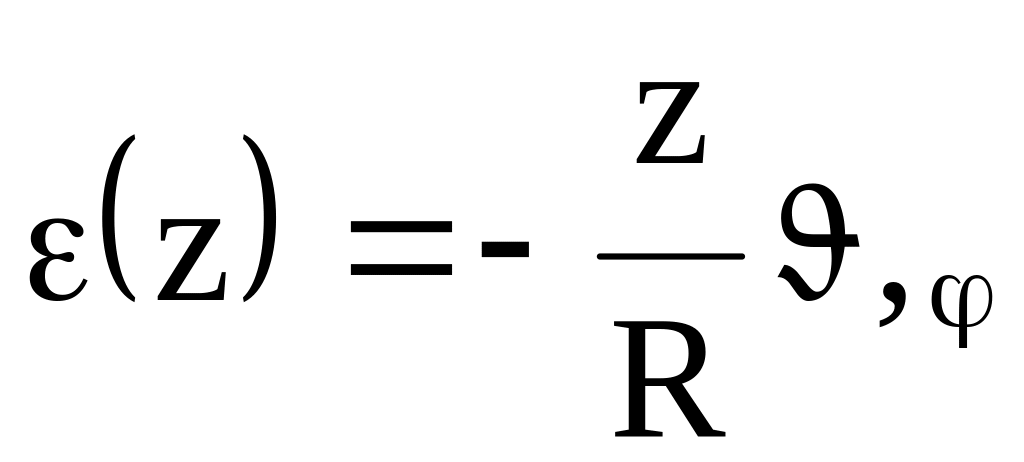 Как обычно при использовании гипотез Бернулли, перемещения точек, не лежащих на оси кольца, определяются зависимостями