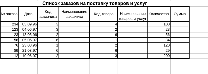 список фирм-заказчиков, заданный таблицей 2: