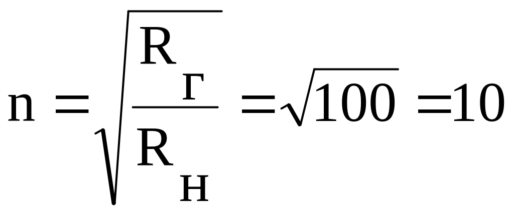 Коэф. усиления трансформаторного каскада будет величиной имеющей обратную зависимость по отношению к затуханию.