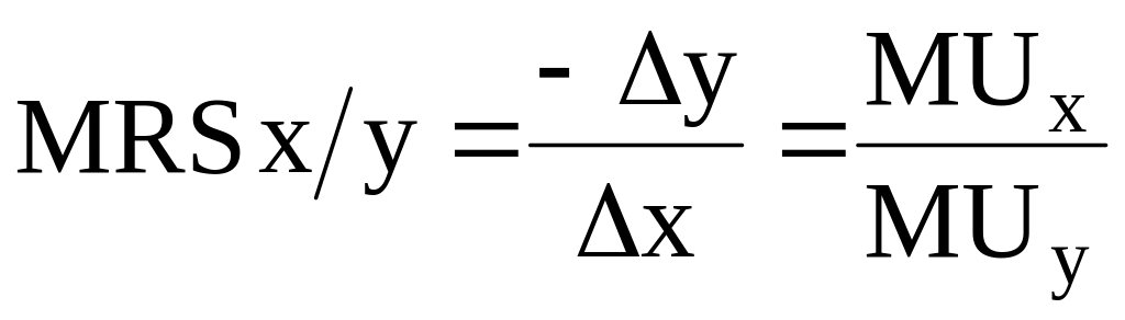 Кривая безразличия – это линия, объединяющая ряд наборов благ, одинаково предпочтительных для потребителей. Карта безразличия – совокупность кривых безразличия. Кривая безразличия (мал. 3.3), лежащая выше и правее других, представляет собой более предпочтительные наборы товаров; для любой пары доброкачественных благ кривые безразличия выпуклы к началу координат; кривые безразличия не пересекаются, они параллельны, то есть каждая кривая соответствует определенному уровню полезности; расположенные выше кривые безразличия соответствуют более высоким уровням полезности; кривые безразличия имеют отрицательный наклон, так как отрицательный наклон определяется предельной нормой замещения товара х товаров у; кривые безразличия могут быть проведены через любую точку пространства. Предельная норма замещения – MRS x/y. От какого количества товара х потребитель готов отказаться ради увеличения потребления товара у на одну единицу.
