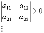Теорема 2 (критерий Сильвестра). Квадратичная форма является положительно определенной тогда и только тогда, когда все левые верхние угловые миноры матрицы А являются положительными, т.е.
