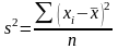 3. Дисперсия признака, определяемая на основе квадратической степенной средней (представляет собой средний квадрат отклонений индивидуальных значений признака от их средней величины):