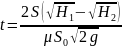 Время опорожнения сосуда от уровня Н1 до уровня Н2 можно определить по формуле: