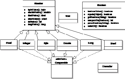 Объекты этих классов представляют ссылки на участки динамической памяти, в которой хранятся их значения, и являются классами-оболочками для значений базовых типов. Классы, соответствующие числовым базовым типам, находятся в библиотеке java.lang, являются наследниками абстрактного класса Number и реализуют интерфейс Comparable, представляющий собой интерфейс для определения возможности сравнения объектов одного типа между собой. Объекты классов-оболочек по умолчанию получают значение null.