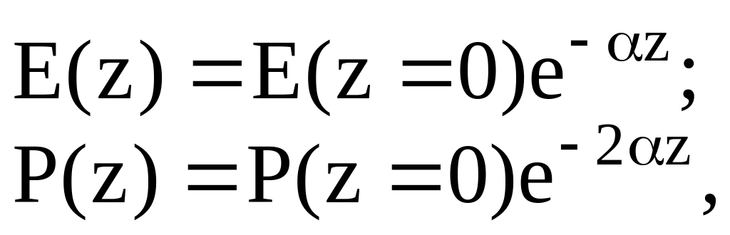Распространение ЭМВ в ЛП сопровождается уменьшением амплитуды напряженности составляющих поля (или мощности) по законам: