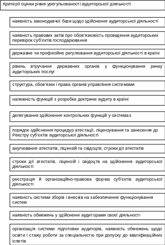 Рис. 2.1. Критерії оцінки рівня урегульованості аудиторської діяльності