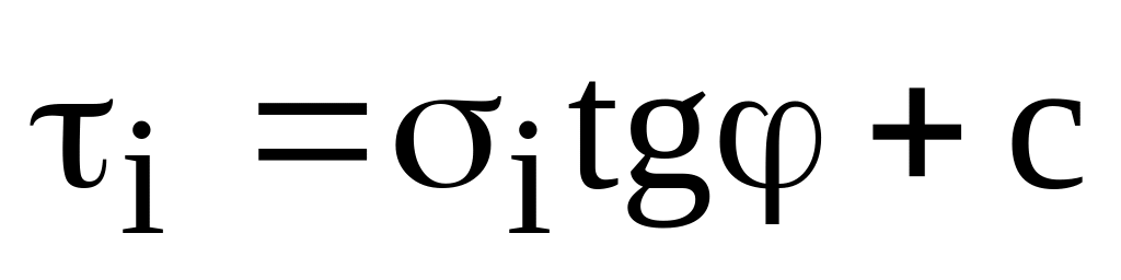 де τі - тиск, що зрізує зразок грунту (МПа); σі - нормальний тиск на зразок грунту (МПа); φ - кут внутрішнього тертя грунту (º); с - питоме зчеплення грунту (МПа).