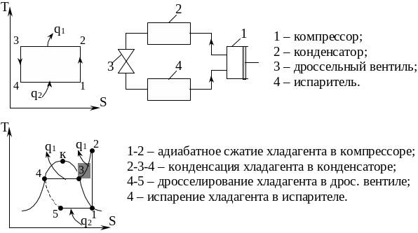 Эффективность холодильной установки оценивается холодильным коэффициентом: