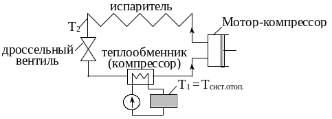 По обратному циклу могут работать не только холодильные установки, но и тепловые насосы. Идея теплового насоса была выдвинута Томсоном в 1852 году. Она заключалась в том, что рассеянное в окружающей среде тепло забирается с помощью затрачиваемой из вне работы и при более высокой температуре отдается внешнему потребителю.
