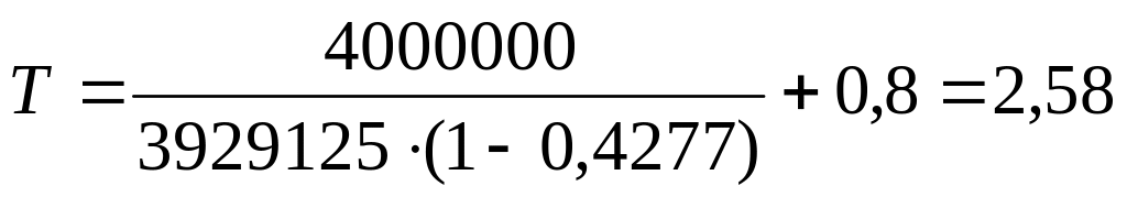 Следовательно, с учетом риска эффективность капитальных вложений полностью удовлетворяет требованиям теории и установленному предпринимателем ограничению нормы эффективности. Теперь можно определить срок окупаемости капитальных вложений по формуле (2.16):