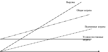 Вывод: проект будущего бизнеса обеспечивает предпринимателю достаточно высокий доход и может быть рекомендован к реализации с учетом неопределенности будущей рыночной ситуации и риска вложений. По расчетным данным построим график зависимости затрат и результатов производства от объема выпуска продукции, который представлен на рис. 2.1.