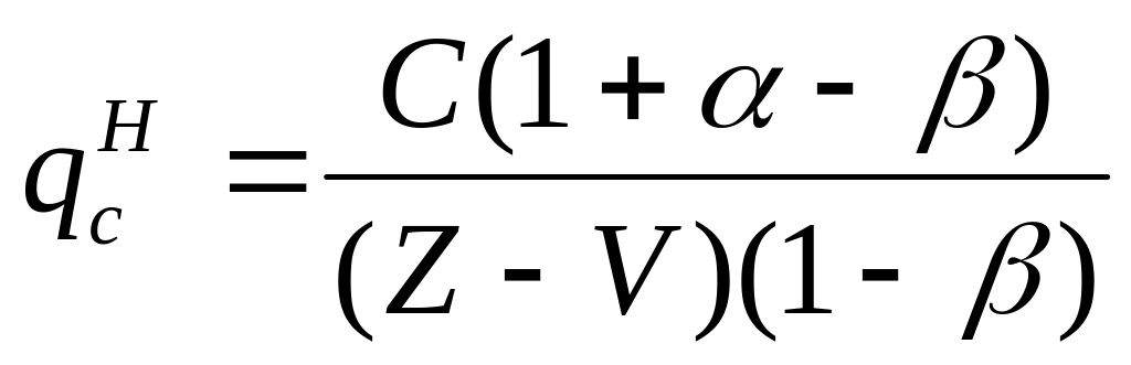qс = C : (Z – V) = 2 700 000 : (1,1115 – 0,27) = 3 207 603 шт./год (2.10)