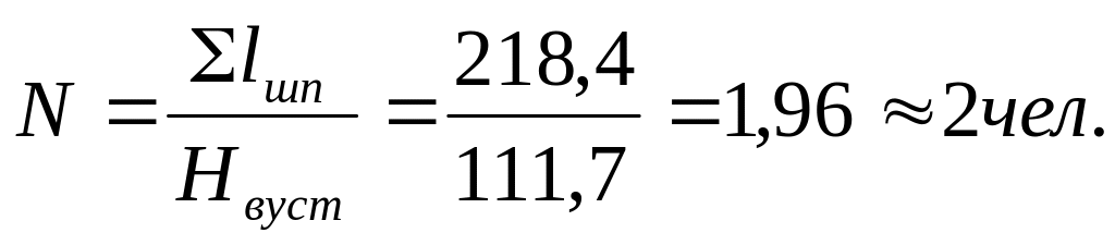 Таким образом, на выемке ниши будет занято 5 горнорабочих очистного забоя: 2 чел - на бурении шпуров и 3 чел - на уборке угля.