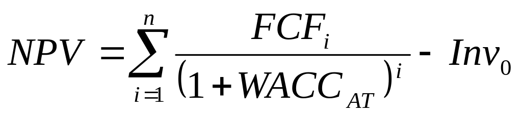 Рассчитанная таким образом цена капитала (WACCAT) используется впоследствии для дисконтирования прогнозных значений приростных свободных денежных потоков (FCF) по проектам и определения их чистой приведенной стоимости (npv) [4; 6]: