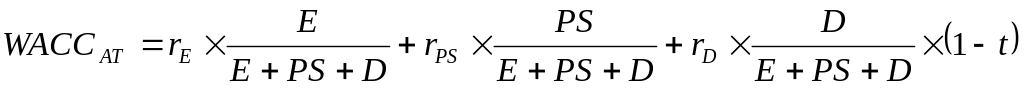 E + PS + D = V – общая стоимость всего капитала, привлекаемого для финансирования инвестиций.