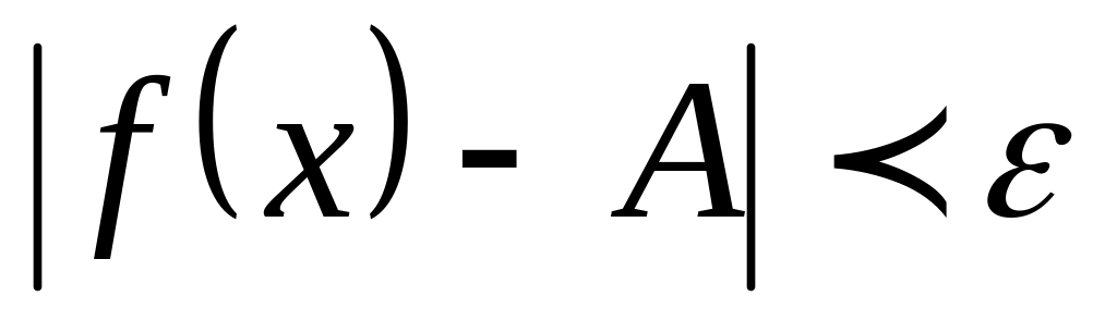 Определение. Число называется пределом функции при стремящемся к (или в точке ), если для любого, даже сколько угодно малого положительного числа , найдется такое положительное число (зависящее от ), что для всех , не равных и удовлетворяющих условию , выполняется неравенство .